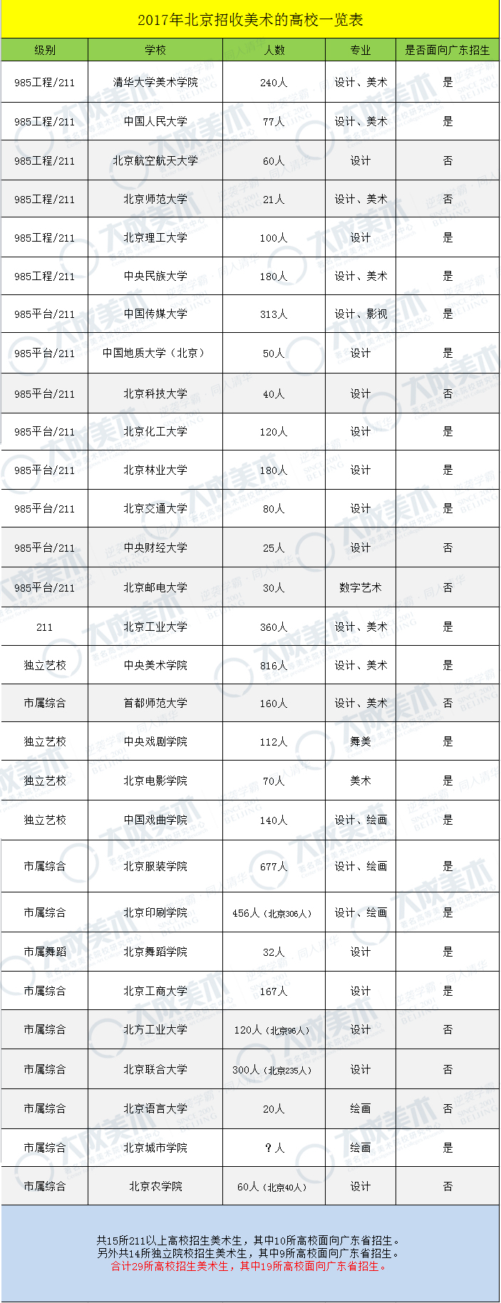 学美术的孩子可以报考北京的19所高校,其中4所985工程院校,10所211工程院校,也即社会认可度较高的重点本科院校,2所教育部直属顶尖艺术院校。而广东省内相应级别的高校数量是0所、1所(华南师范大学)、0所。